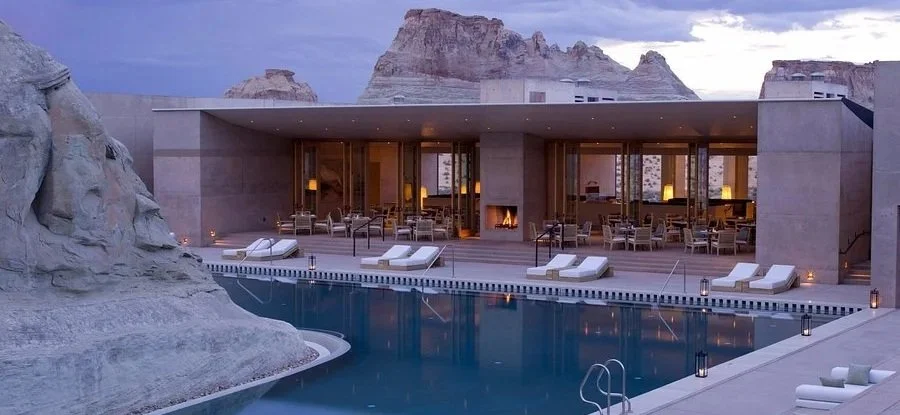 Amangiri is one of the most exclusive wellness resorts in the USA. Its Aman Spa features a Water Pavilion with a sauna, steam room, and cold plunge pool.